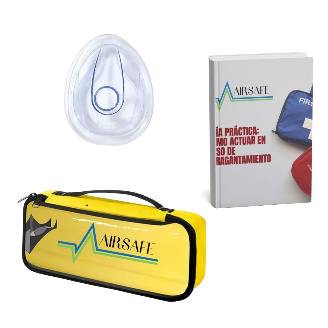 AirSafe es un dispositivo de desobstrucción de vías respiratorias diseñado para actuar en emergencias por atragantamiento, incluso cuando no hay fuerza física suficiente para aplicar otras maniobras.